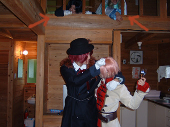 準備中写真です。 とにかく月影は皆の姿をバシバシ撮りまくってますので、こういう何気ない写真も多い。 台詞はなんだか仲悪そうですが、実際は皆さんとても仲がいいのですよ〜(^^) |